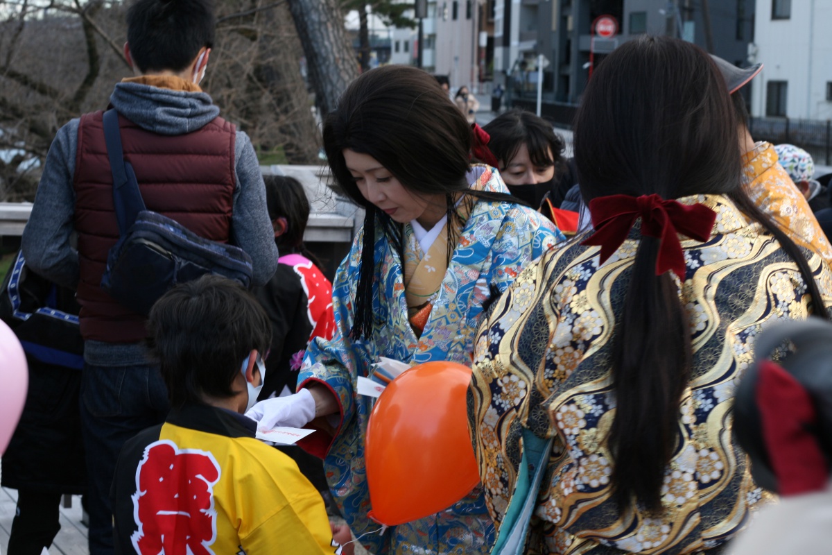 ・広忠公と於大の方が縁起米を配布しながら、会場を練り歩きます。